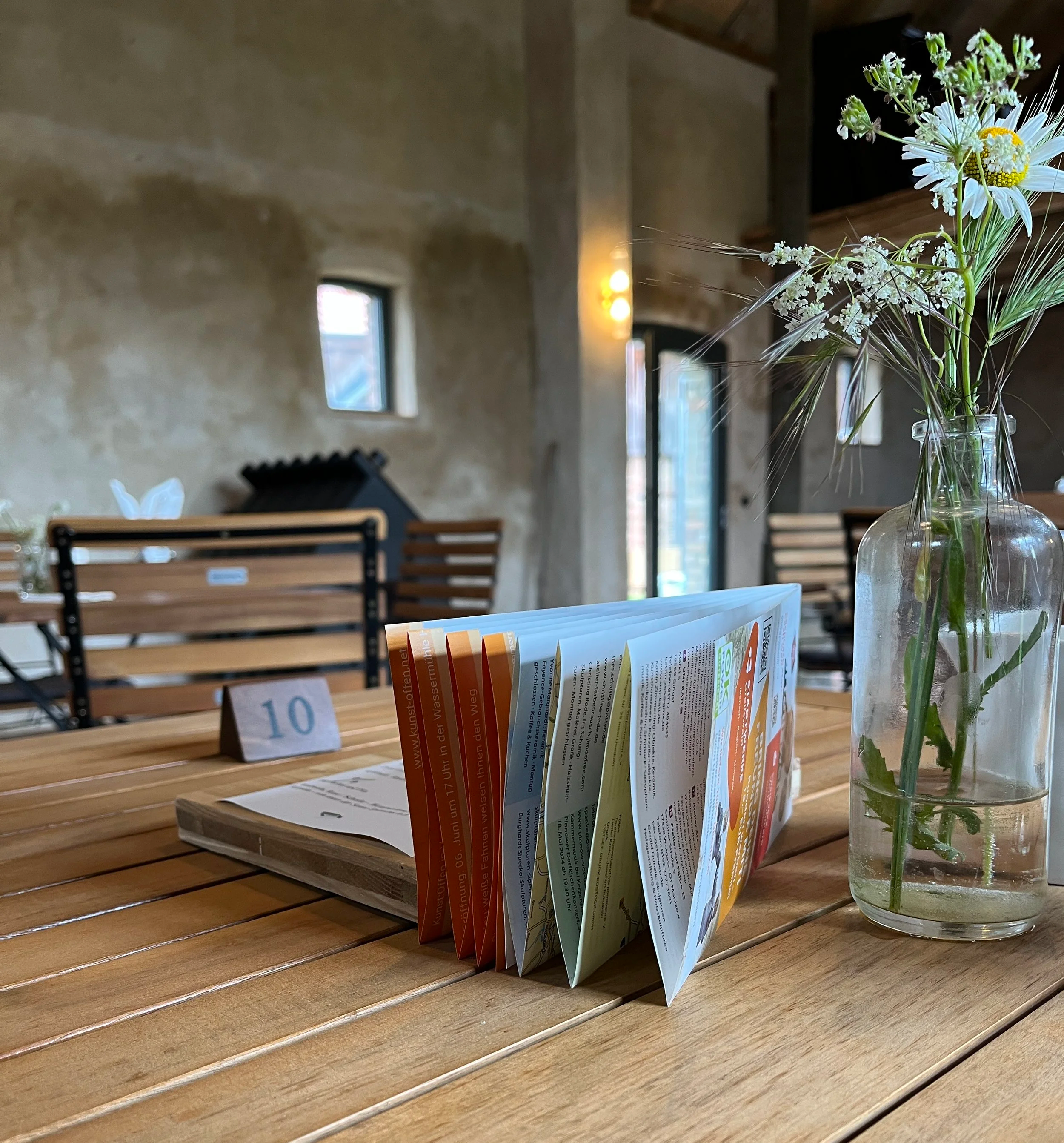 Bei Regen lässt es sich gemütlich im Café und dem grossen Saal im ehemaligen Rinderstall sitzen.