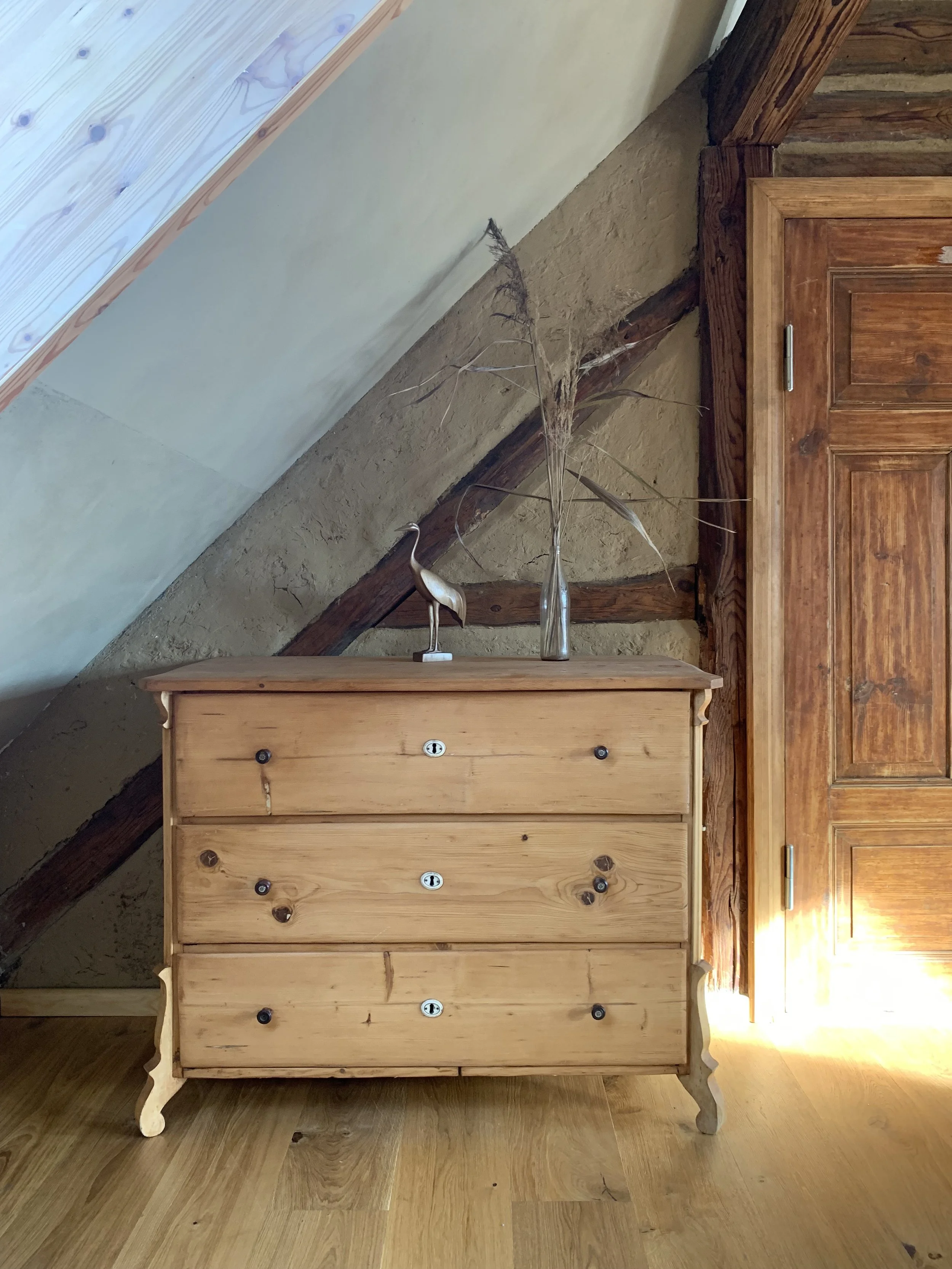 Das Zimmer hat den Namen „Schwalbennest" weil, während des Ausbaus die schwalben genistet haben und die kleinen von Balken zu Balken, den Eltern hinterher, fliegen gelernt haben.